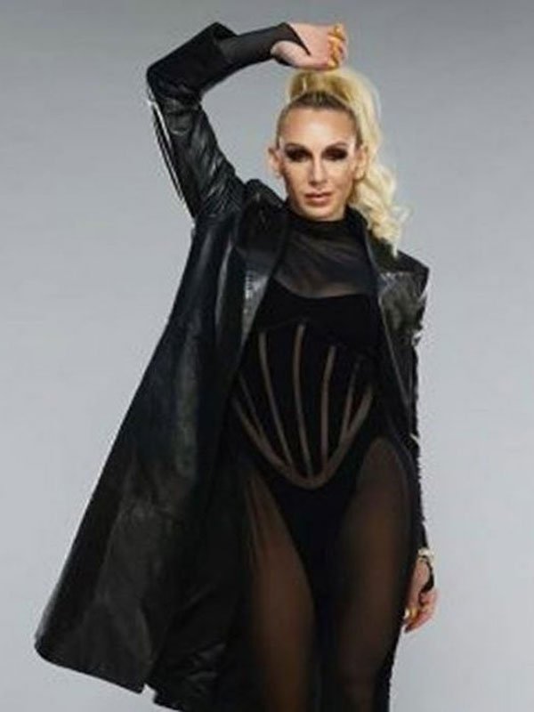 WWE Smackdown Charlotte Black Real LeatherCoat